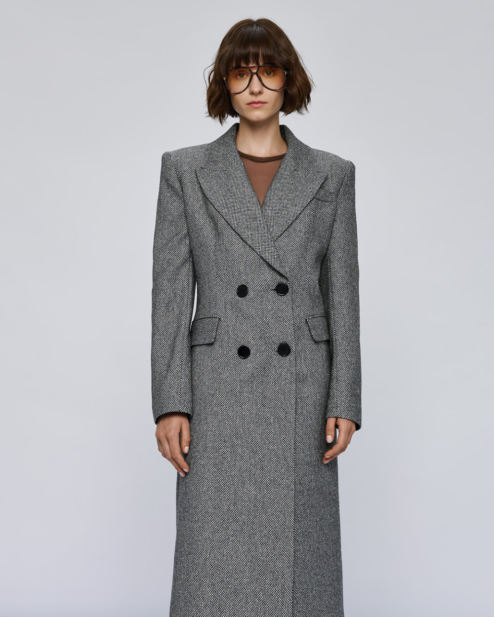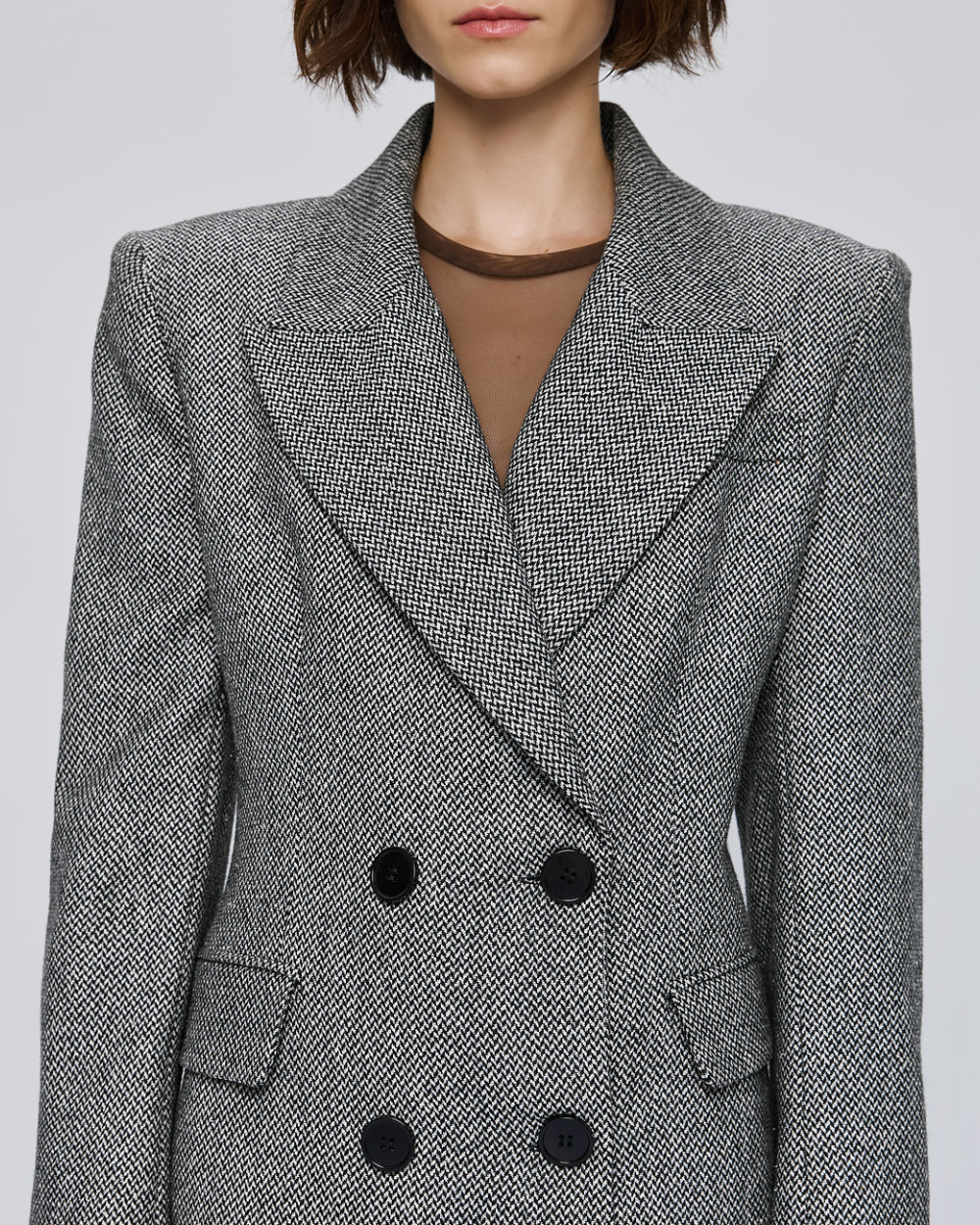 Double-breasted herringbone coat