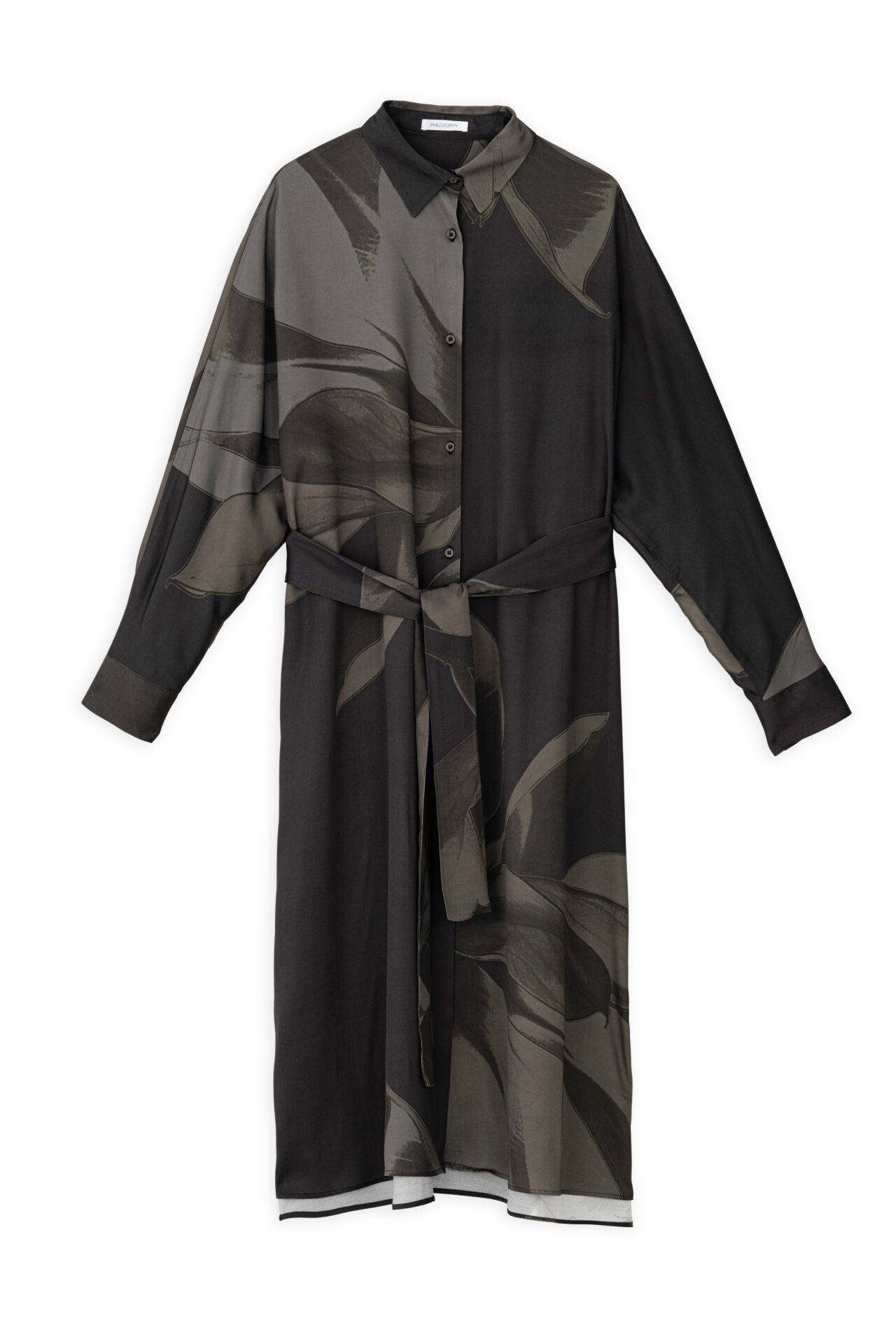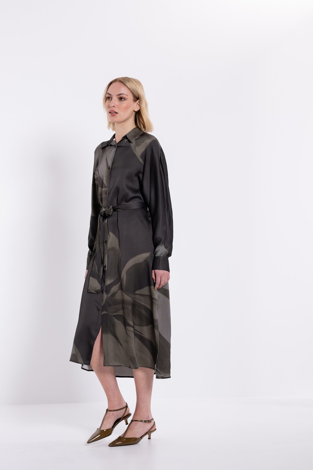 Satin print shirtdress