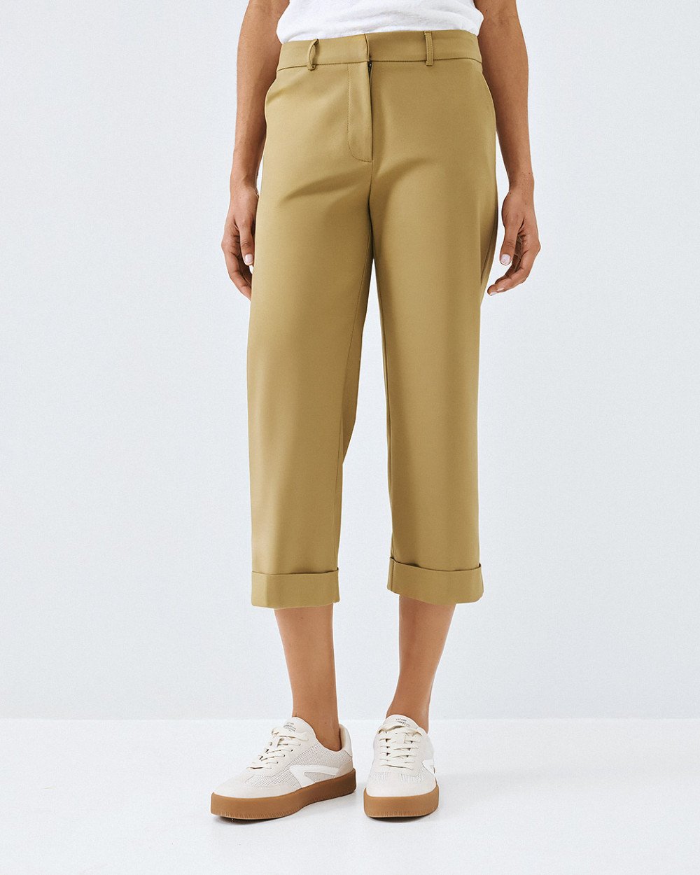 Cropped pants with turn-up hems